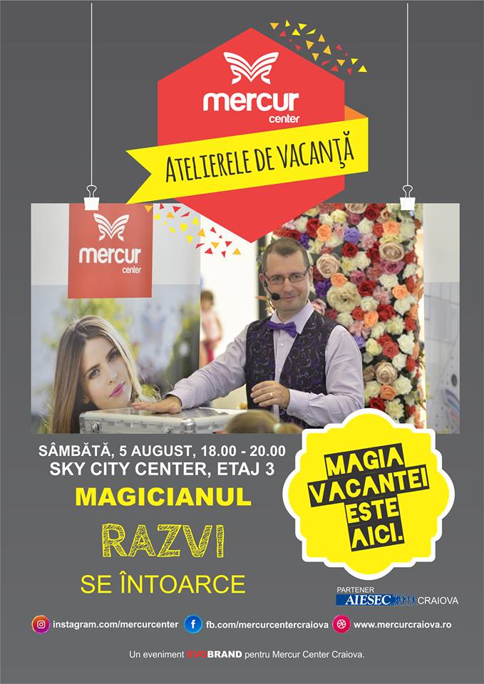 Sâmbătă, 5 august, te aşteptăm de la ora 18.00, să ne distrăm împreună, în SKY CITY CENTER, etaj 3!