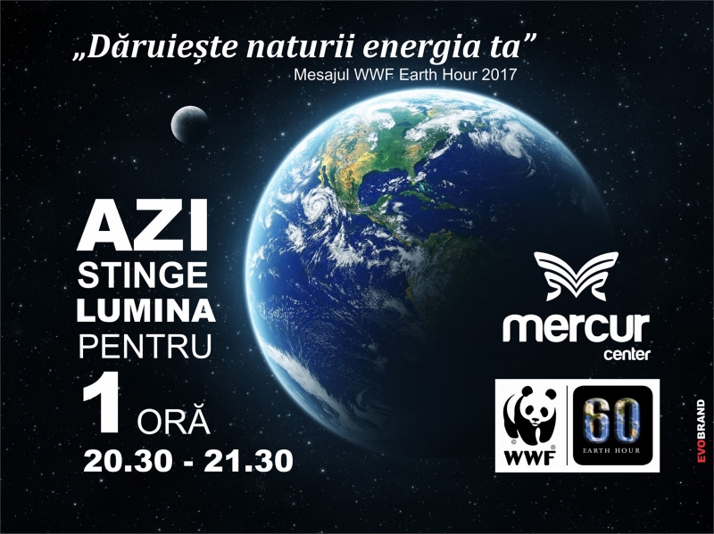 Mercur Center va închide în această seară iluminatul ambiental exterior al centrului comercial, în intervalul 20.30 - 21.30, pentru a marca în acest fel Ora Pământului.