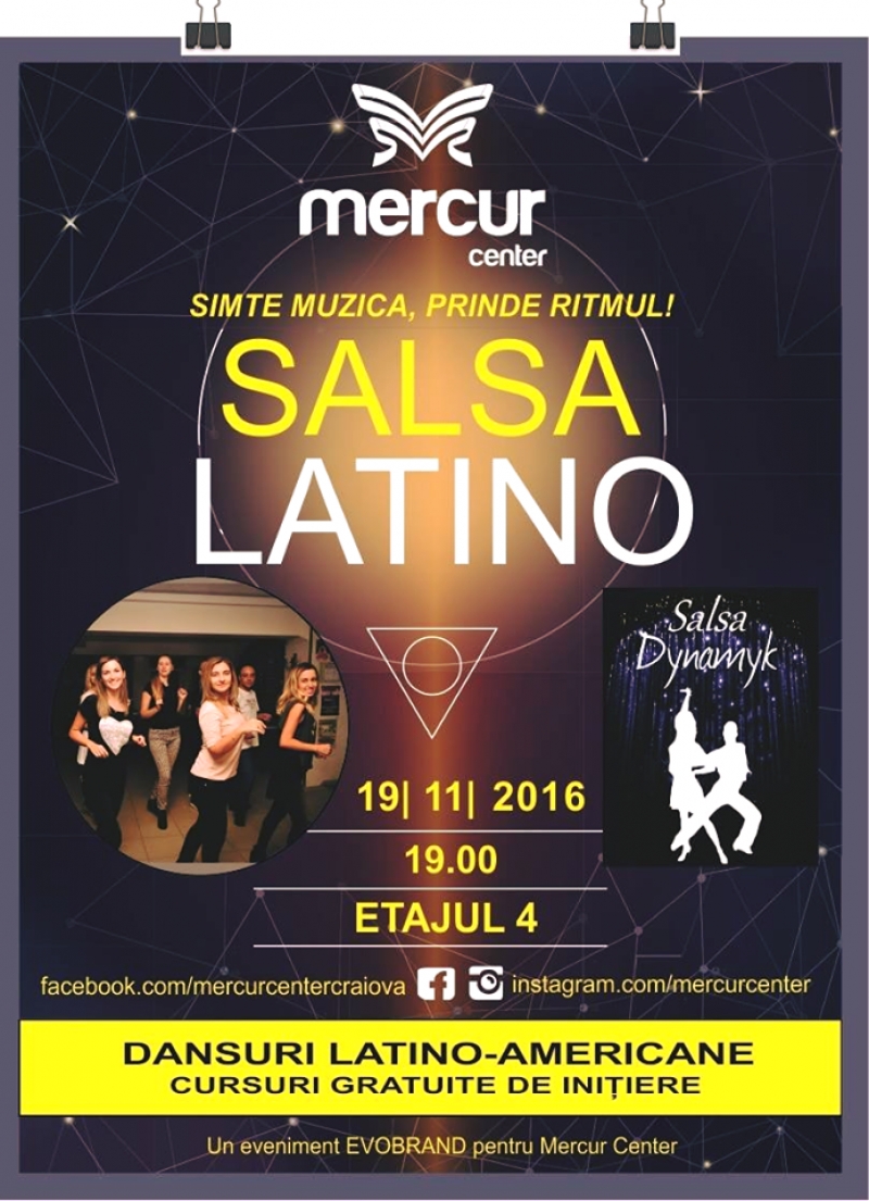 Sâmbătă, 19 noiembrie, de la ora 19.00, în Mercur Center, etajul 4, răsună acordurile muzicii latino!