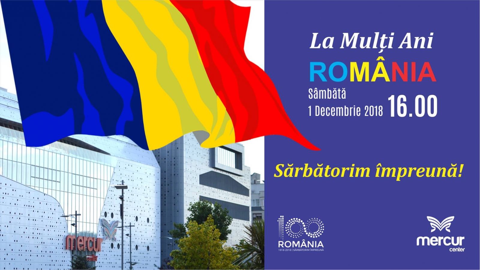 Sambata, 1 Decembrie, sărbătorim Centenarul în Mercur Center Craiova!