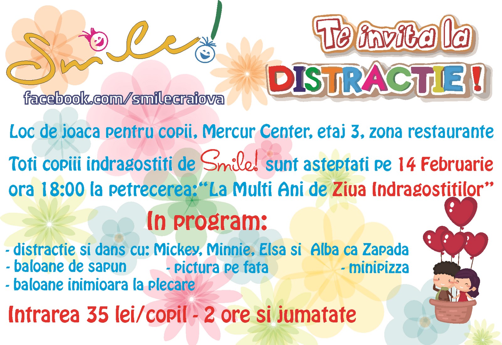 Smile - Loc De Joaca te invită marţi, 14 februarie, la petrecerea “La multi ani de Ziua Îndrăgostiţilor!”