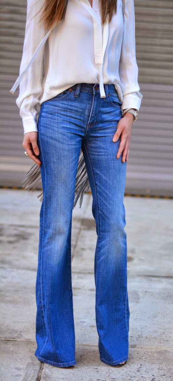 Pantaloni evazaţi. Pantalonii evazaţi nu se vor demoda niciodată, iar partea avantajoasă este că ne fac picioarele să arate mai lungi şi mai subţiri. Aveţi însă grijă cum îi purtaţi! Dacă tivul e puţin mai lung, v-aţi putea împiedica de ei. Pe de altă parte, alegerea unei lungimi prea scurte nu vă va avantaja, creând impresia că blugul va tăia piciorul. Cel mai bine este să vă orientaţi spre o lungime care aproape că atinge podeaua.