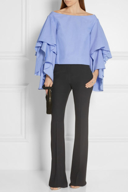 Bluzele cu volane. Bluzele cu volane mari pe umeri, de inspiraţie victoriană rămân în tendinţe. Pentru un aspect dramatic şi pentru o apariţie cu totul surprinzătoare, acest gen de bluză este soluţia cea mai inspirată.