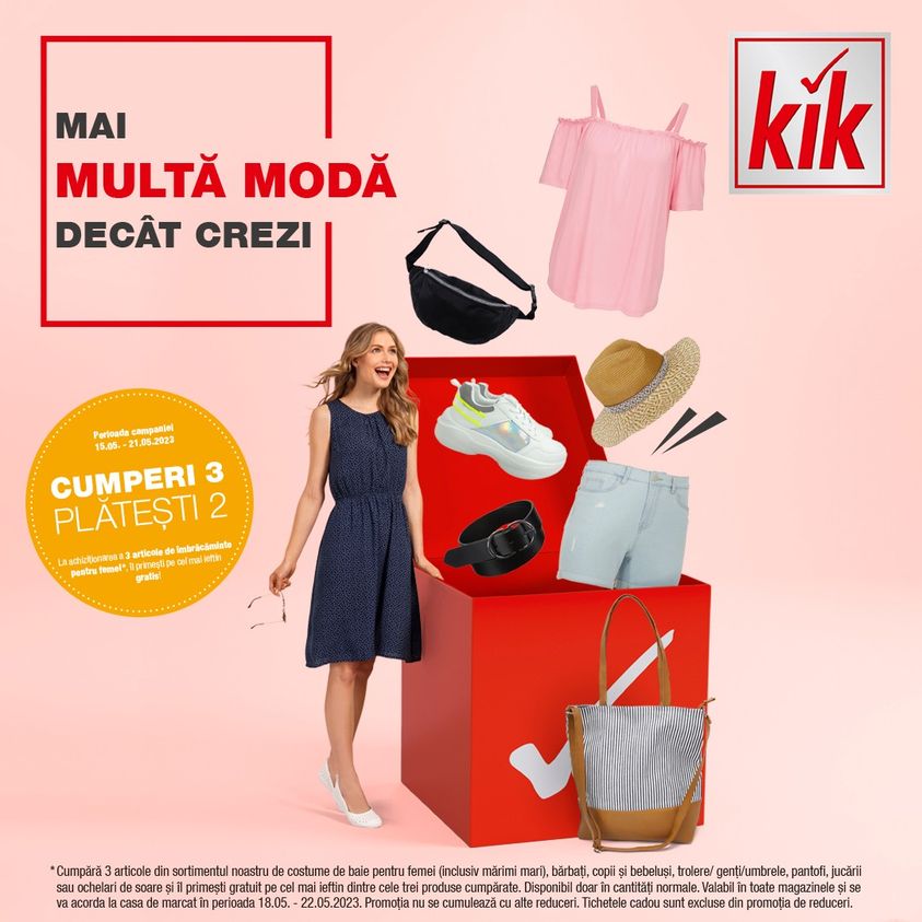*Valabil în magazinul Kik din Mercur Center și se va acorda la casa de marcat în perioada menționată. Promoția nu se cumulează cu alte reduceri.Tichetele cadou sunt excluse din promoția de reduceri.