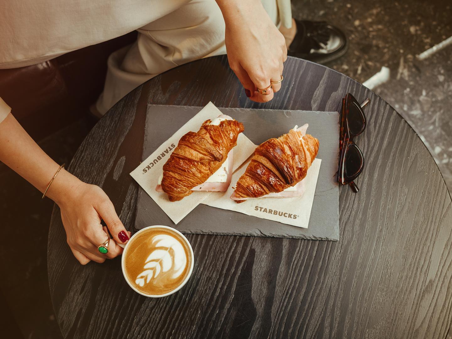 Am putea vorbi mult despre croissantele cu șuncă și brânză, dar preferăm să le mâncăm. Hai și tu să iei micul dejun la Starbucks!