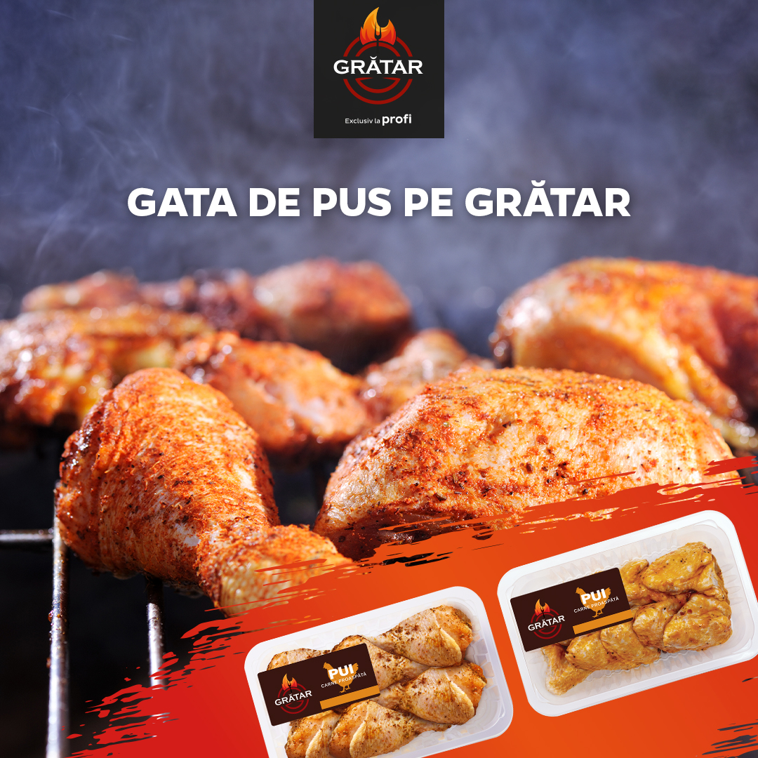 Ce faci ca să scapi de o grijă? Iei puiul deja marinat, condimentat și gata de preparat!  Încearcă produsele Grătar, exclusiv la Profi!