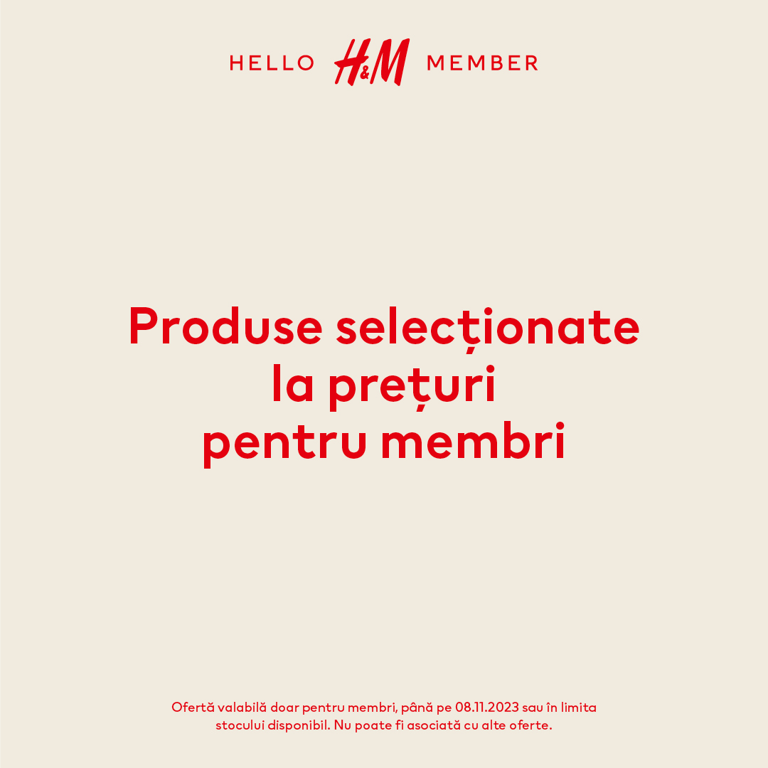 Ofertă disponibilă pentru membri în magazinul H&M din Mercur Center, până pe 8.11.2023, în limita stocului disponibil.