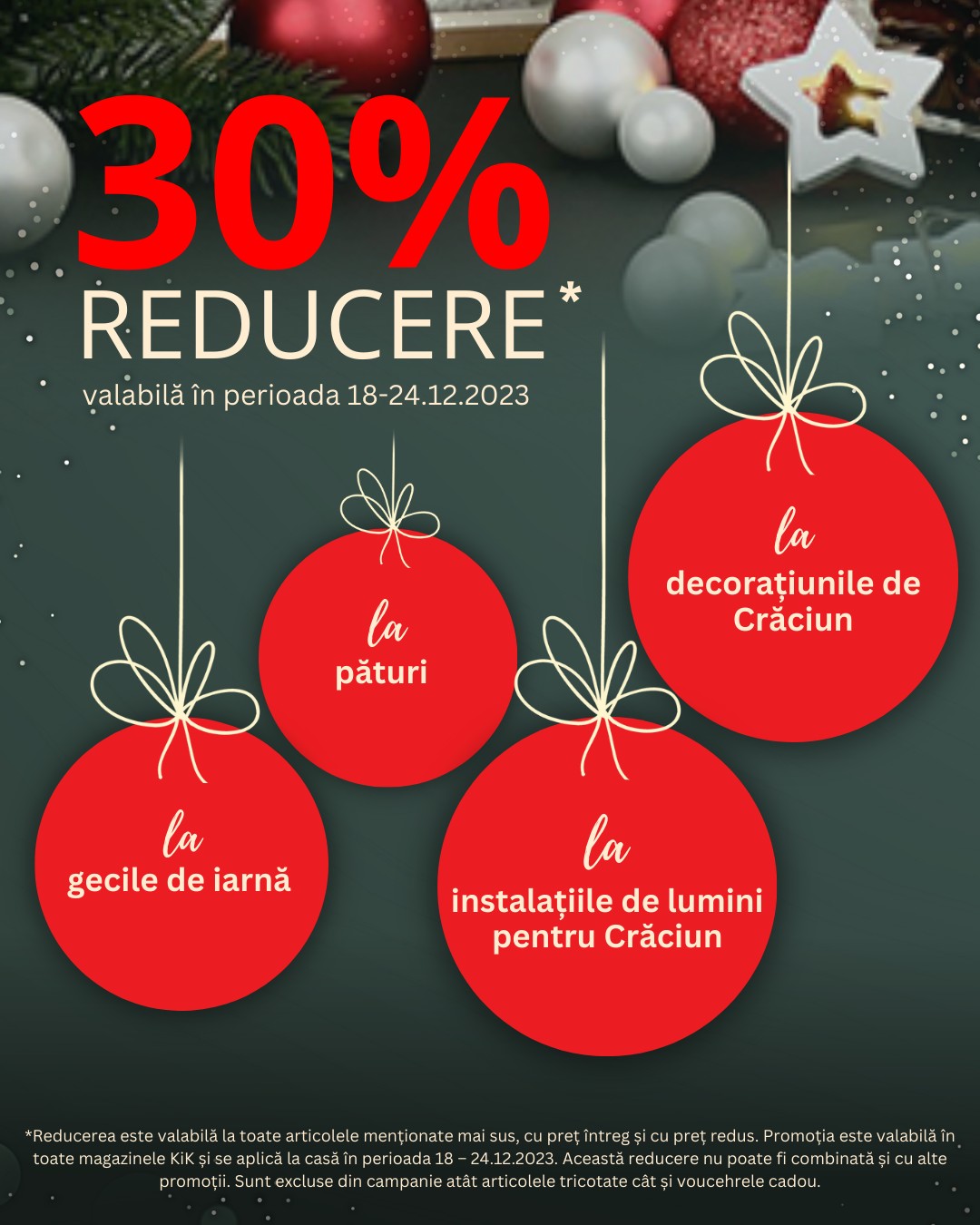 În perioada 18-24.12.2023 te bucuri de o reducere de 30% la gecile de iarnă, pături, instalații de lumini și decorațiuni pentru Crăciun.