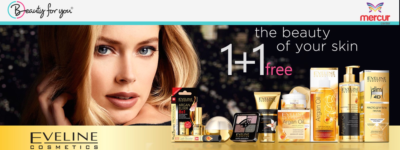Magazinul Beauty for you, Mercur Center, vă întâmpină în luna ianuarie cu promoţia 1+1 gratis la produsele cosmetice Eveline.