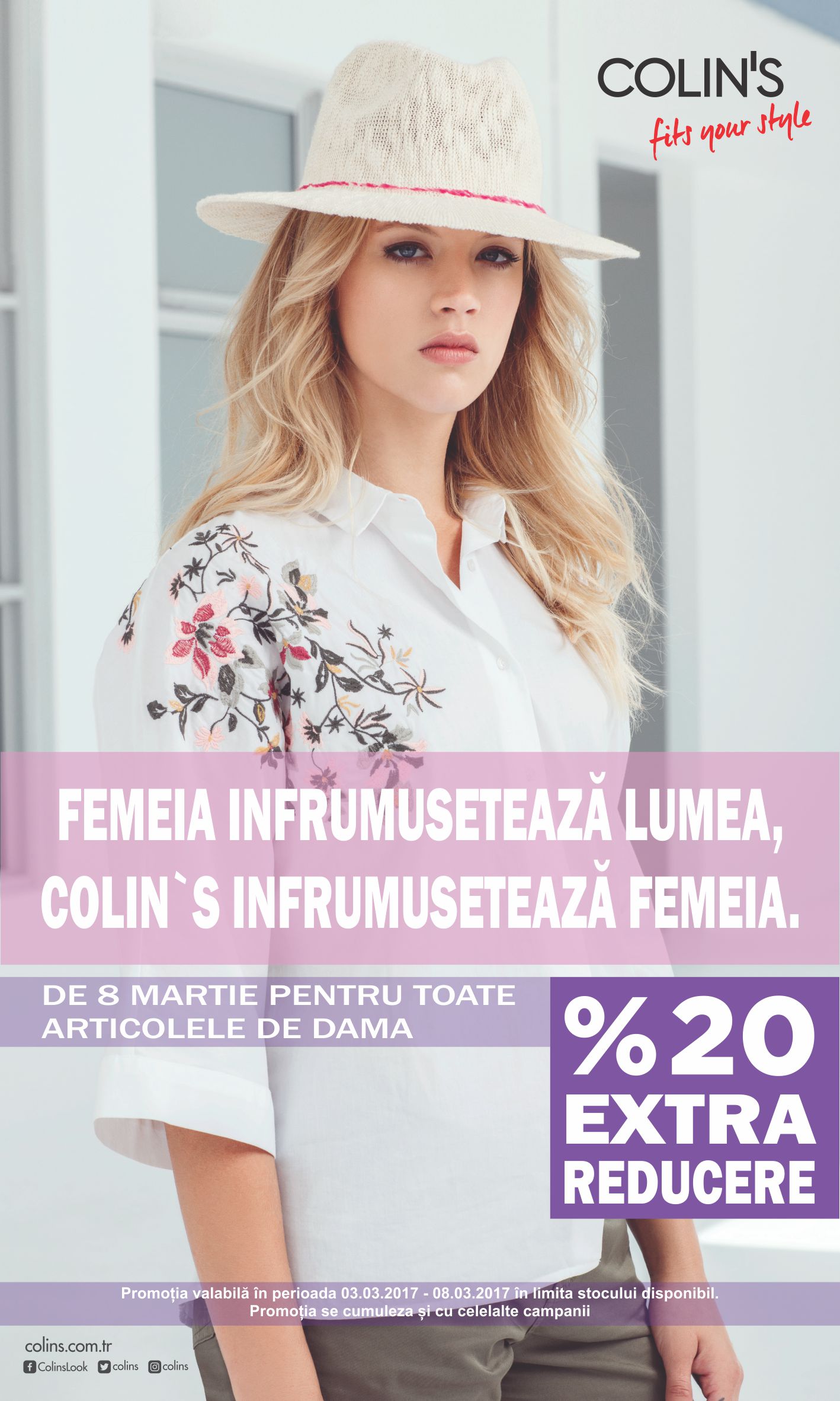 Pentru că în luna martie celebrăm feminitatea, Colin’s vă răsfaţă cu extra reduceri de 20% la toate articolele de damă, în magazinul său din Mercur Center.