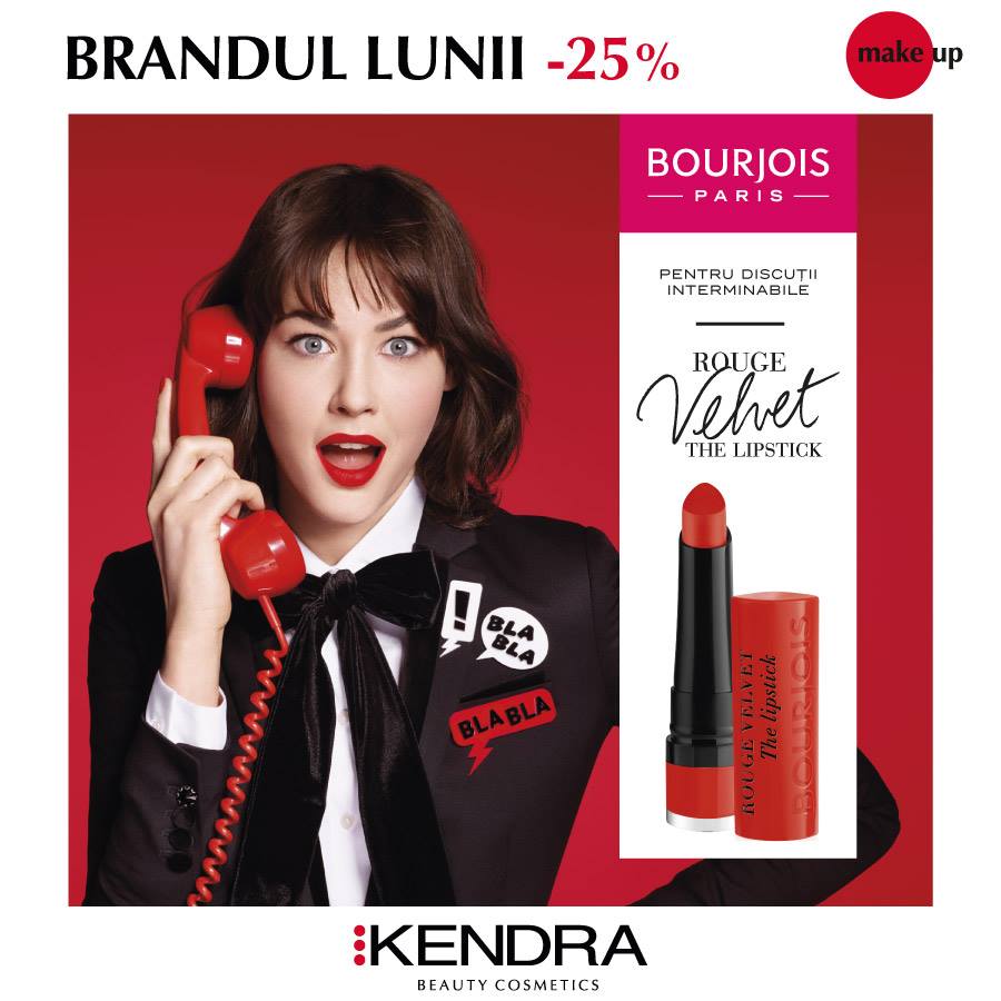 În luna octombrie, noutatea Bourjois - Rouge Velvet Lipstick pornește revoluția în materie de rujuri mate. Formula sa este intens hidratantă iar culorile sunt foarte vii. Este catifelat, delicat la aplicare, conferă buzelor efect mat și are rezistență îndelungată.