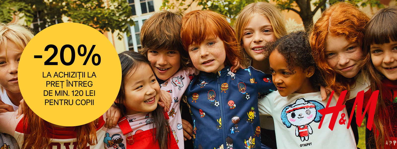 Vino la H&M și bucură-te de promoția specială - până pe 15 septembrie, în magazinele fizice, primești 20% reducere pentru achizițiile la preț întreg de minimum 120 lei din departamentul pentru copii. În plus, în weekendul 7-8 septembrie te așteptăm în magazinele H&M cu surprize din partea LEGO® - seturi cadou și vouchere pentru achiziții LEGO® atunci când cumperi produse din ofertă. Grăbește-te și profită de promoție!
