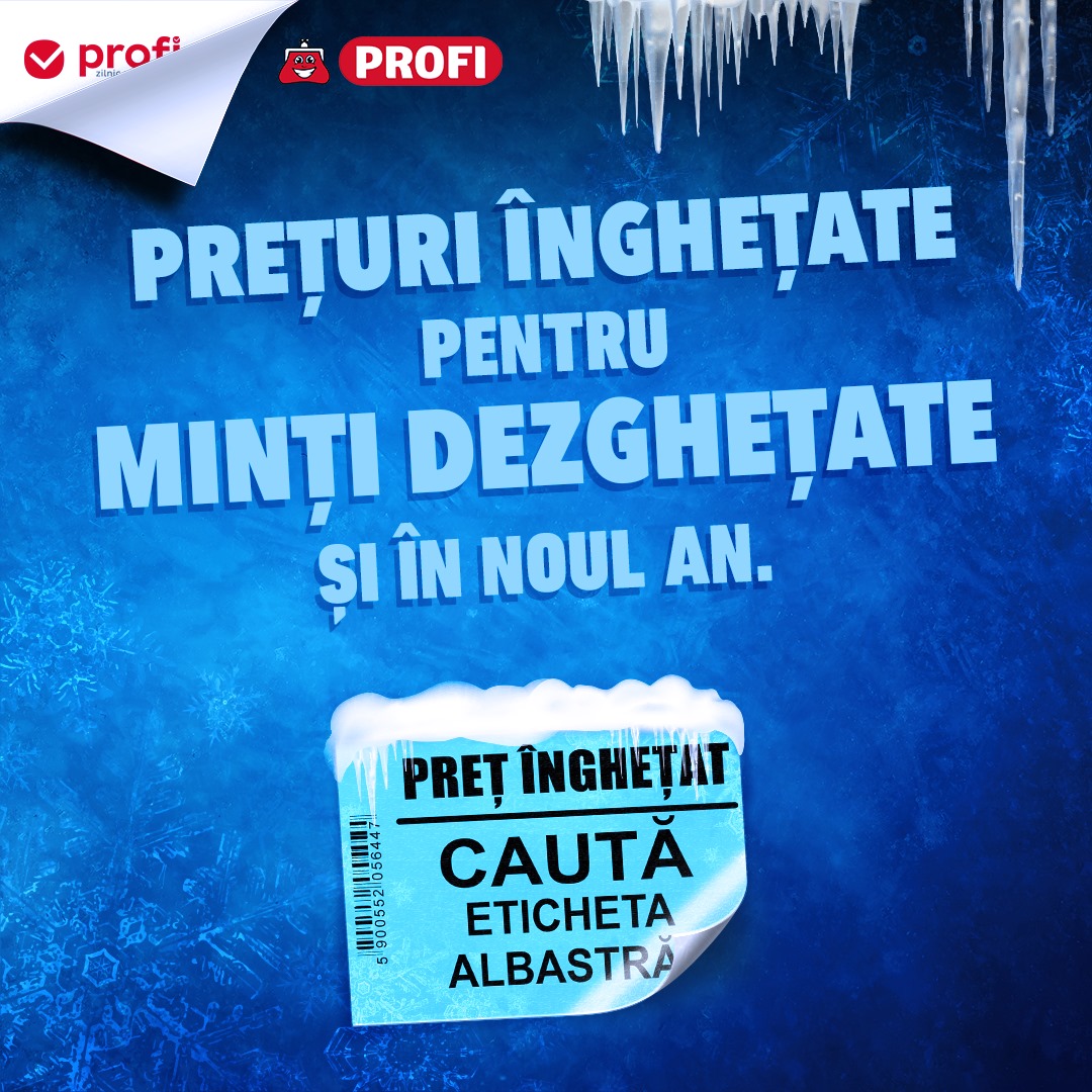 PROFI  îngheață prețurile la sute de produse și în noul an! Caută eticheta albastră la raft și bucură-te de oferte pana in 31.01.2021