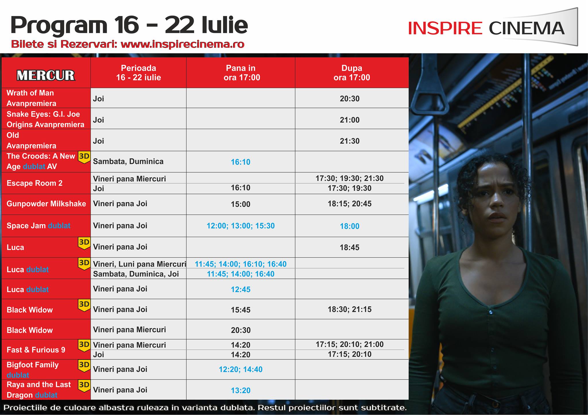 Program Inspire Cinema MERCUR 16 - 22 iulie