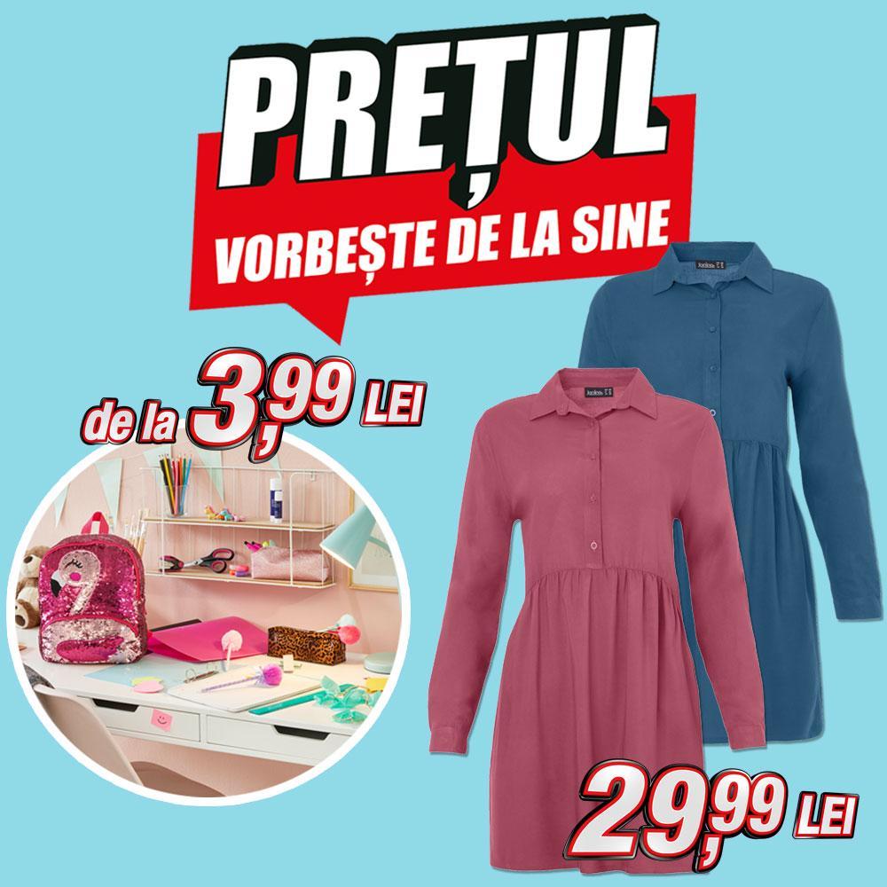 Accesoriile de papetărie și rochiile tip cămașă la prețuri speciale te așteaptă acum în magazin.