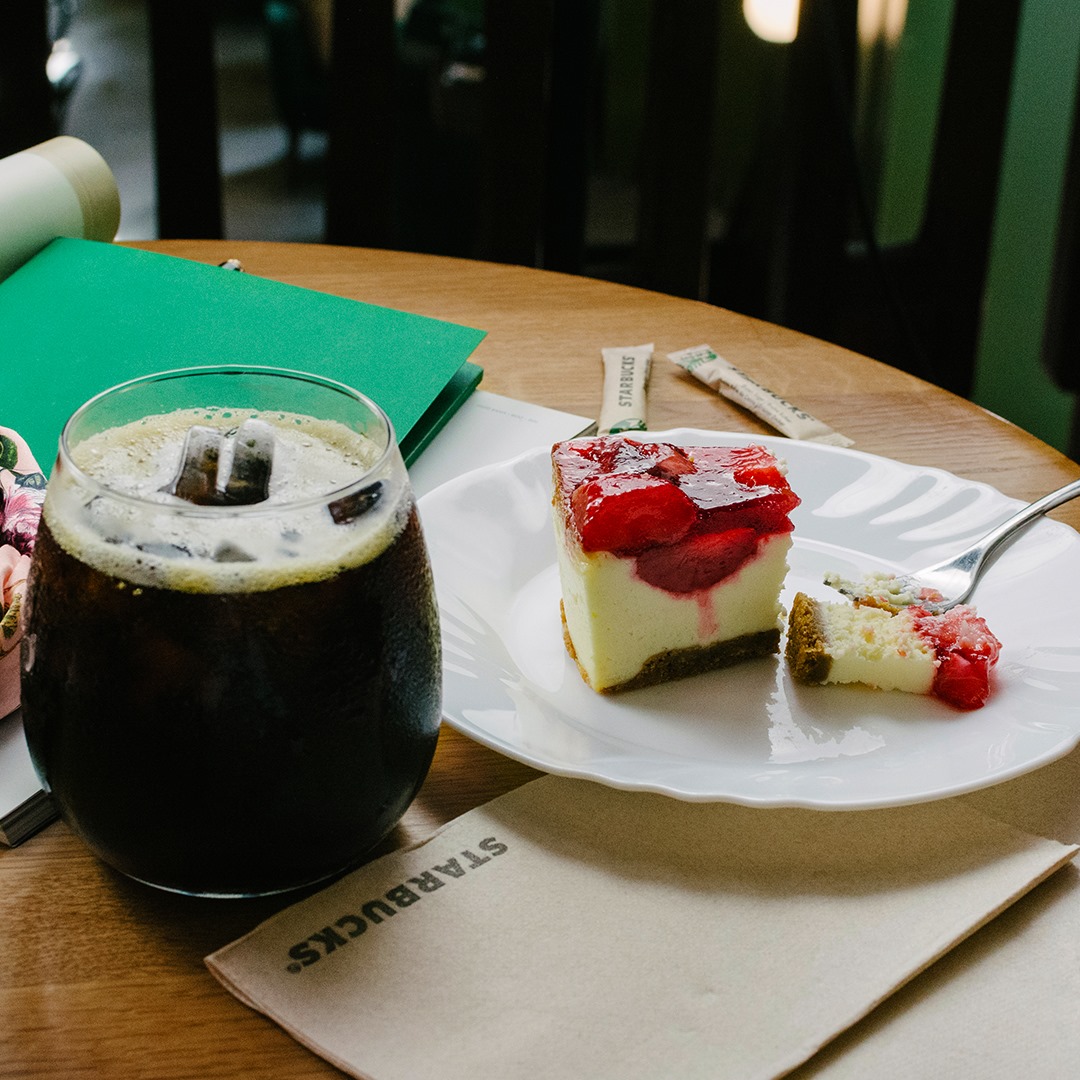 Oferă-ți un răsfăț răcoritor! Combină un Cold Brew aromat, preparat prin infuzare lentă în apă rece timp de 20 de ore, cu o prăjitură ușoară, delicată, cu cremă de brânză și bucăți mari și savuroase de căpșune.