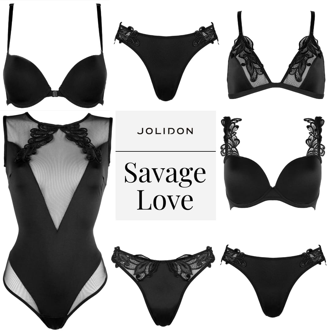 Microfibra fină completată cu tull transparent și aplicații filigranate de broderie definesc colecția nouă de lenjerie Savage Love.